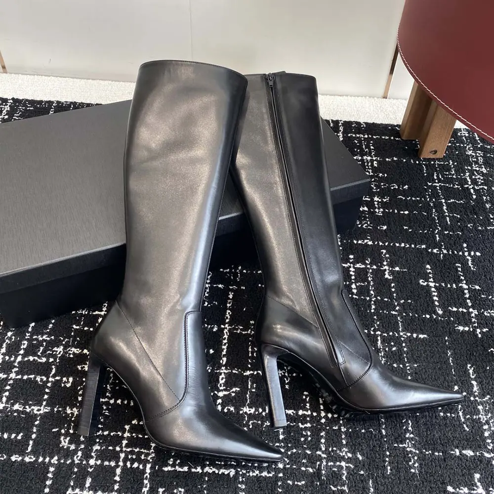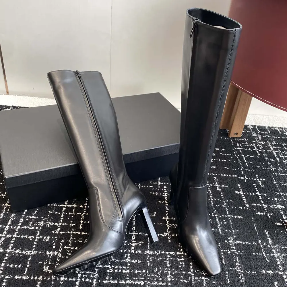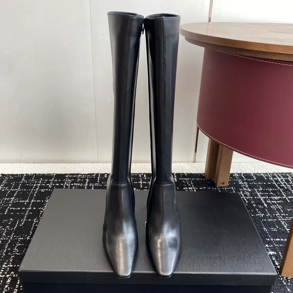 - BOOTS WITH A POINTED SQUARE TOE AND STACKED HEEL, FEATURING A SIDE ZIP CLOSURE.
