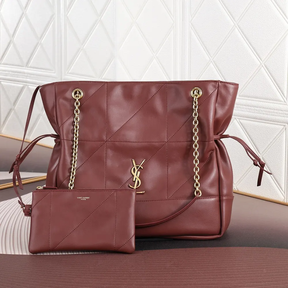 - THE SHOPPING VERSION OF THE JAMIE IN SUPPLE NAPPA, DECORATED WITH THE CASSANDRE AND CARRÉ RIVE GAUCHE TOPSTITCHING.