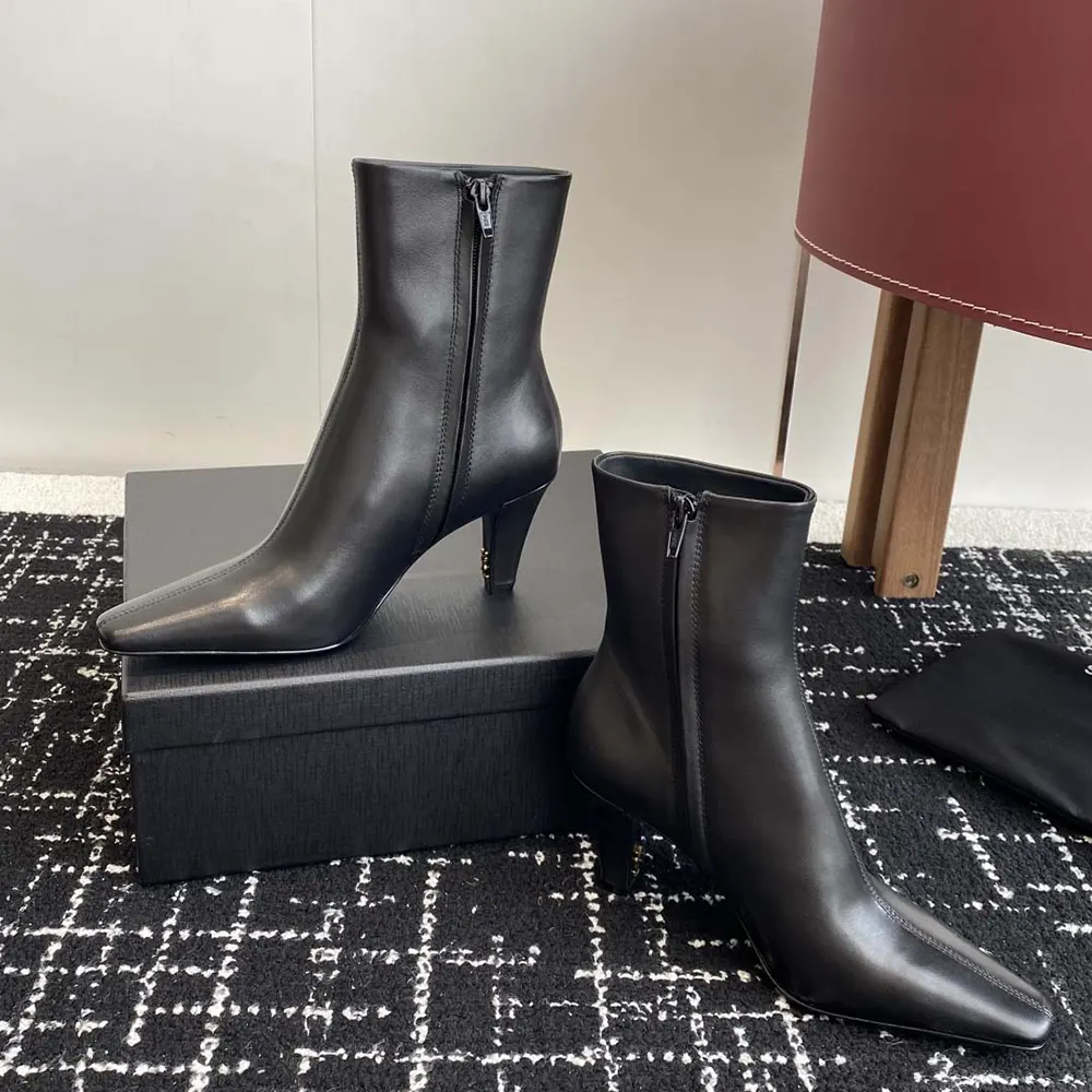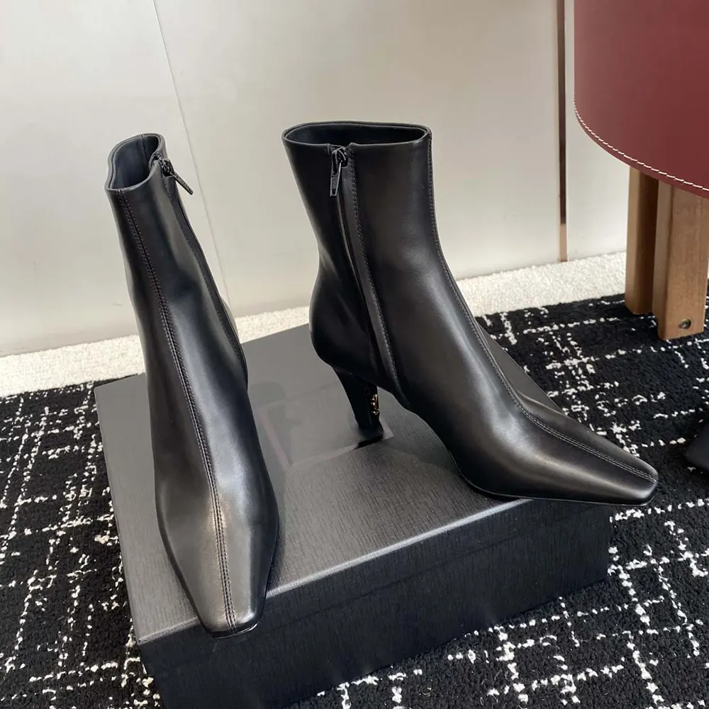 - ANKLE BOOTS WITH A SQUARE POINTED TOE AND TAPERED BLOCK HEEL
