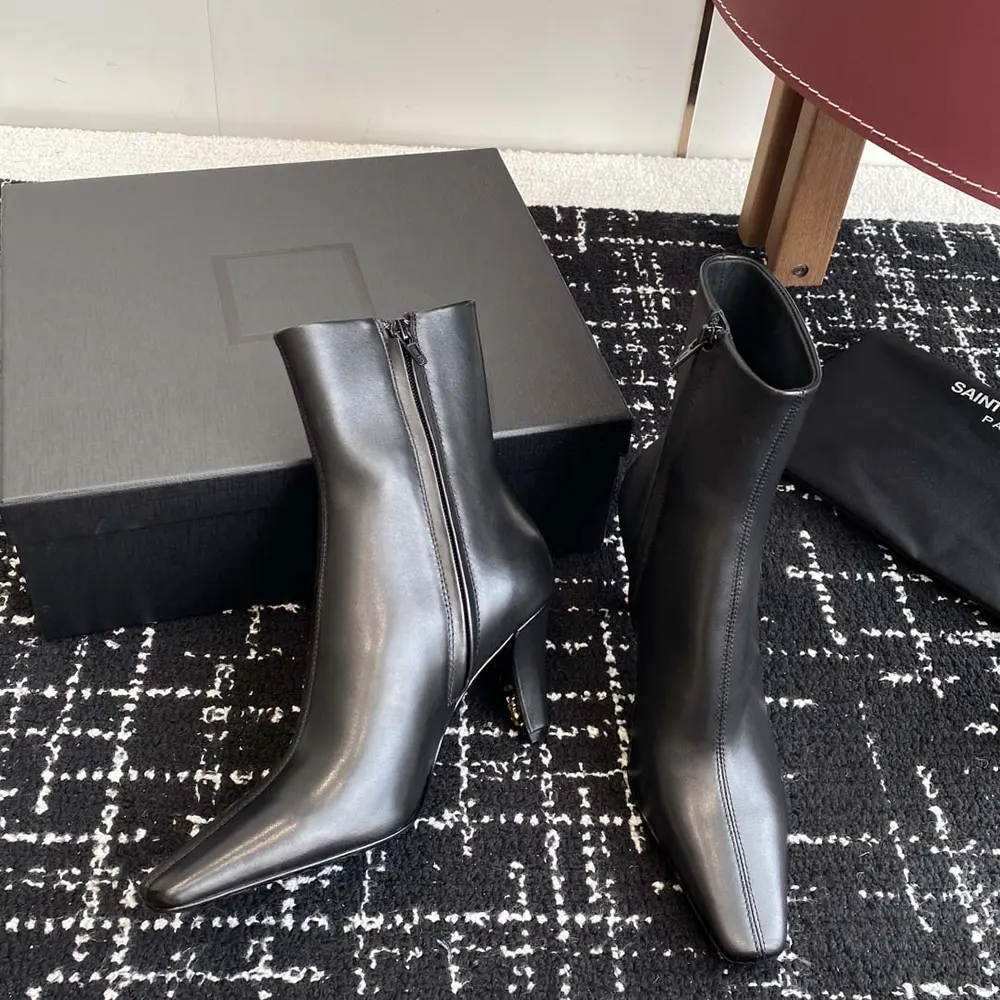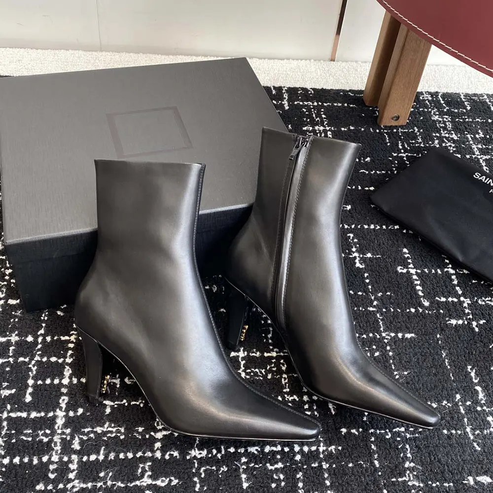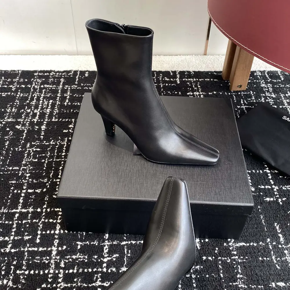 Specification: Saint Laurent YSL Women Jill Booties In Smooth Leather-Black
