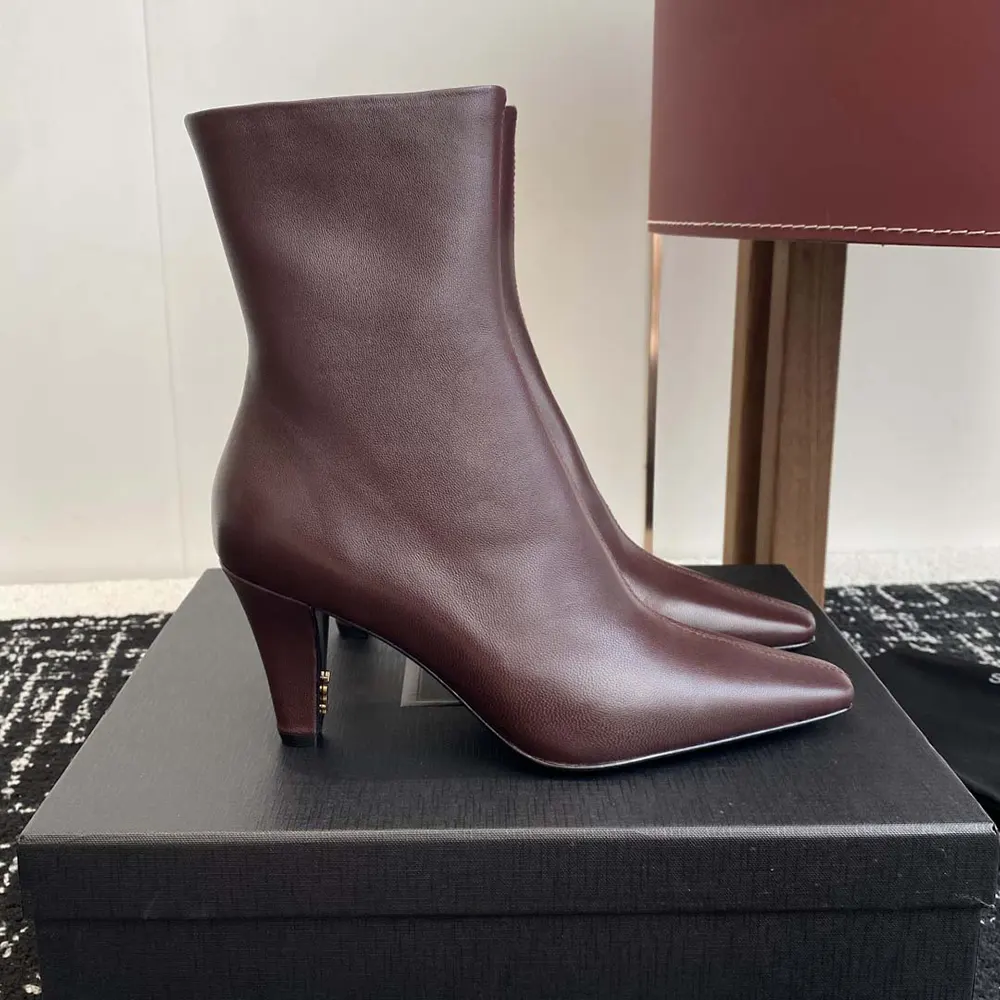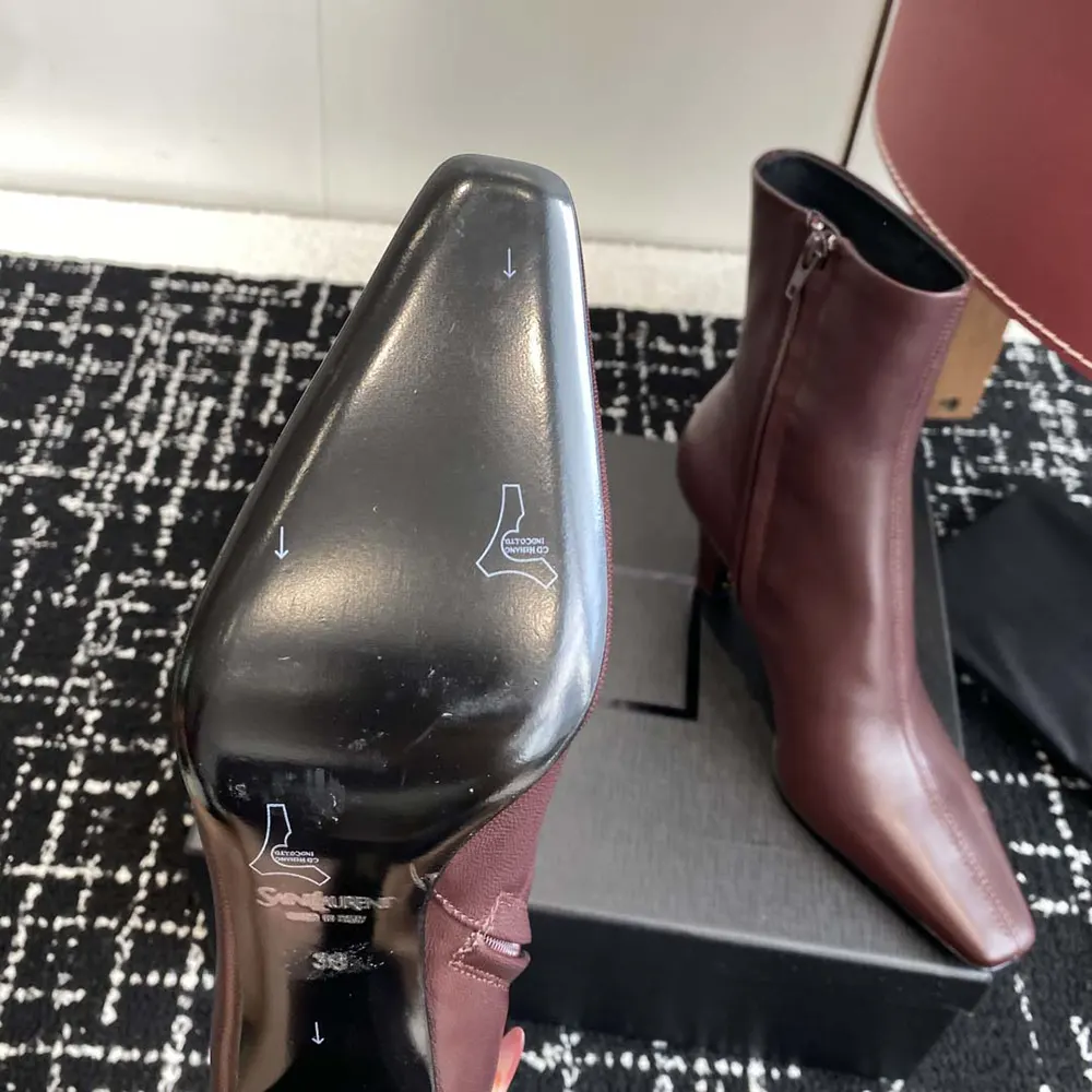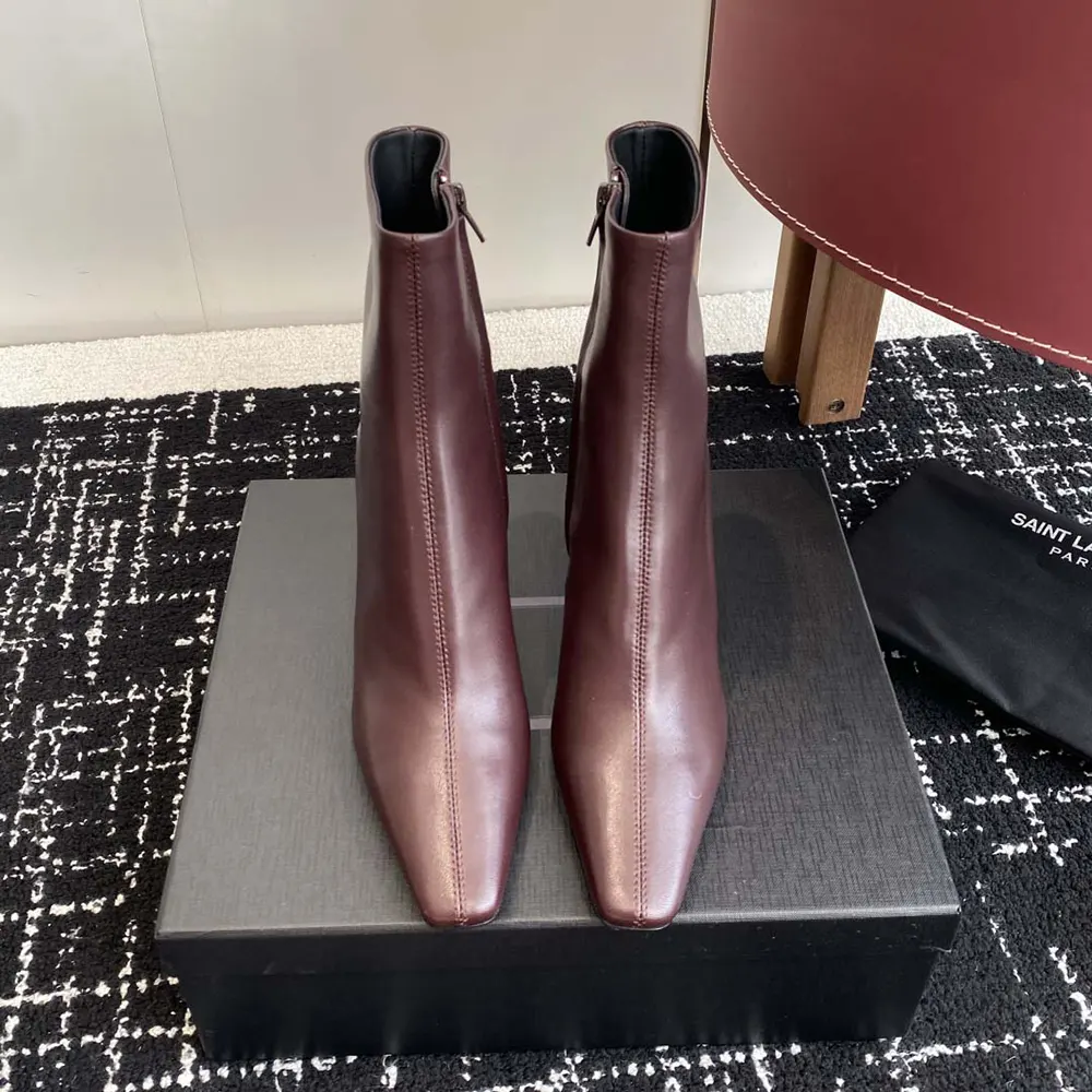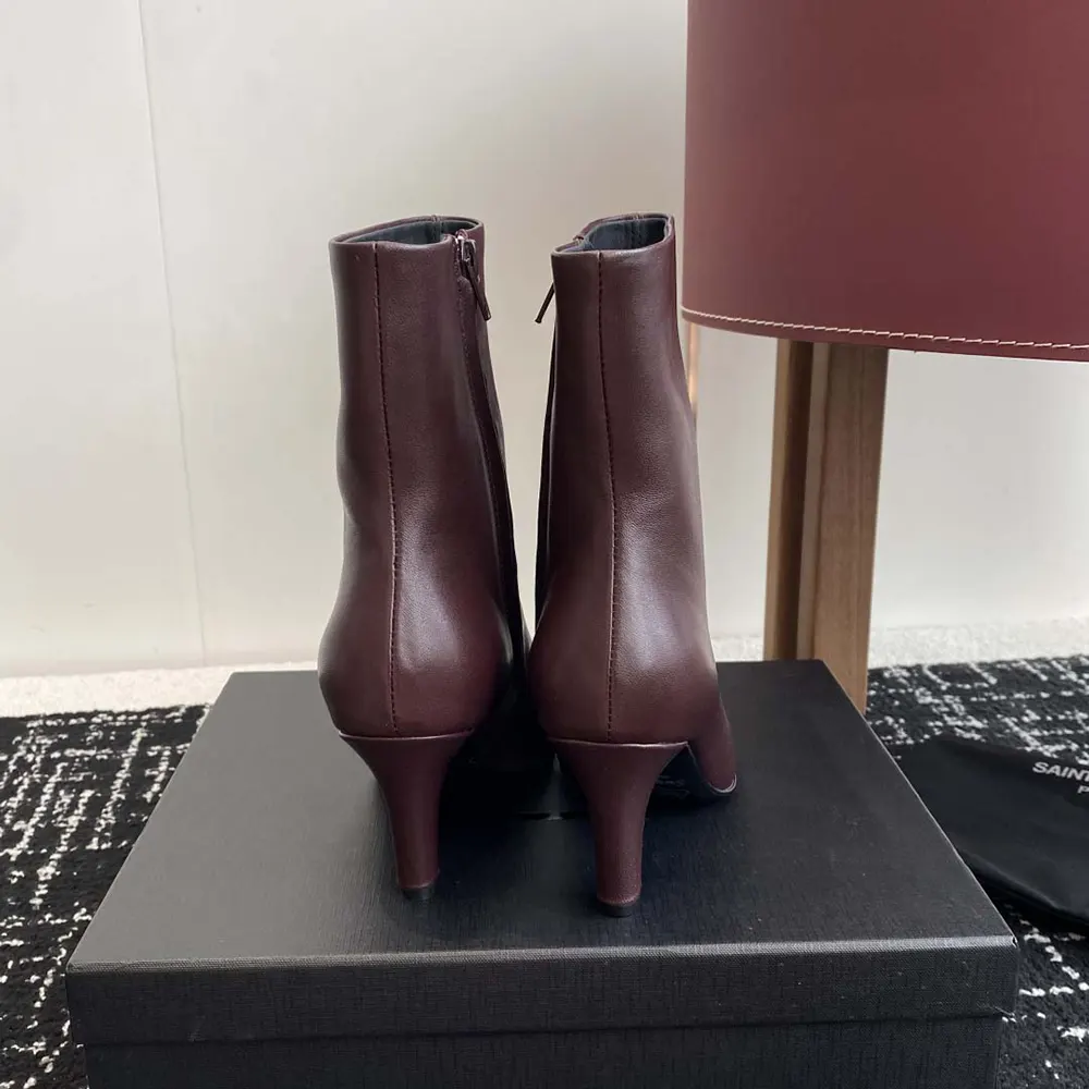 Specification: Saint Laurent YSL Women Jill Booties In Smooth Leather-Maroon