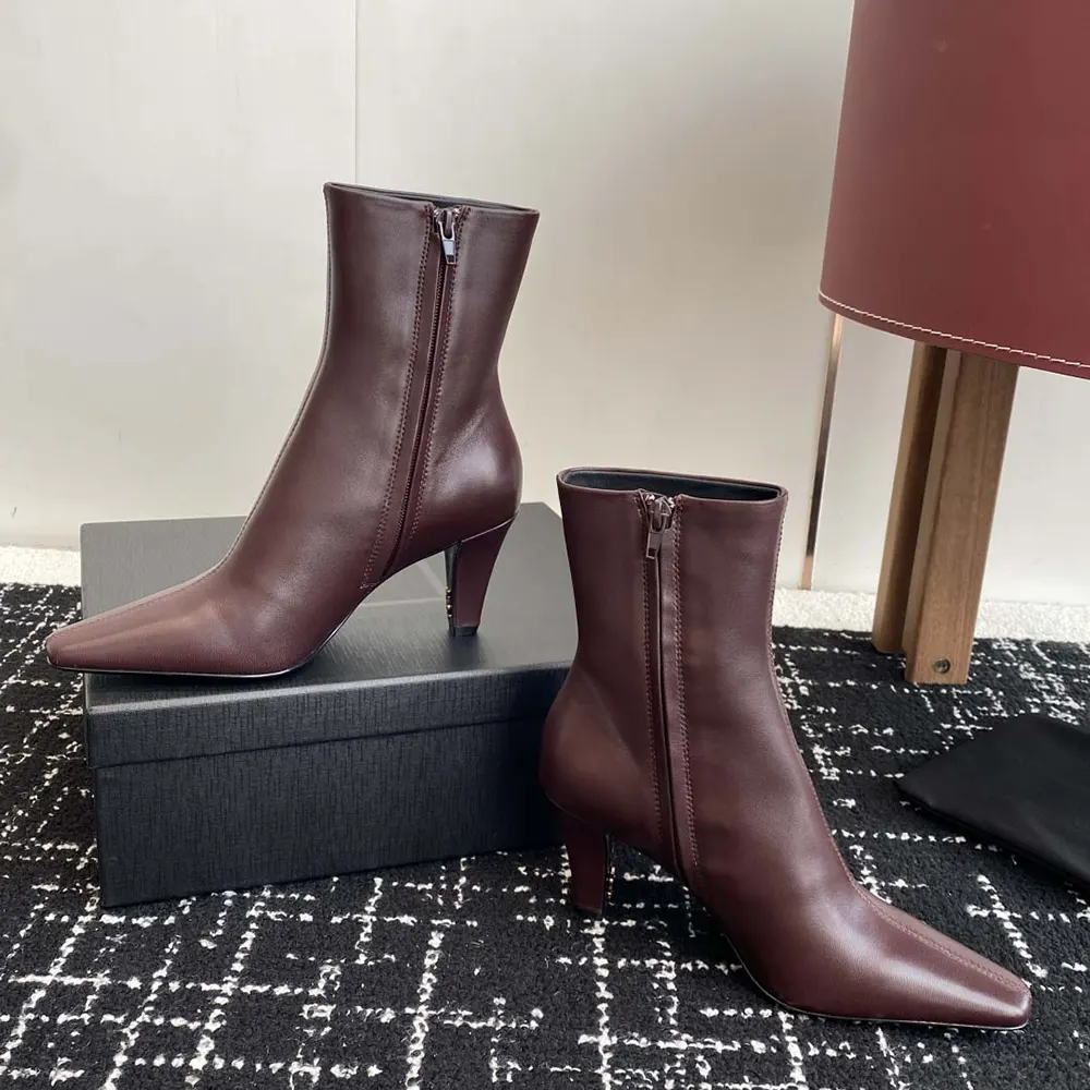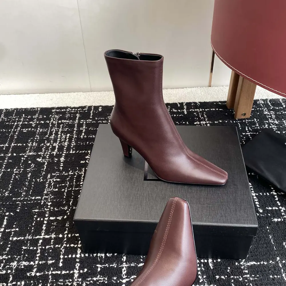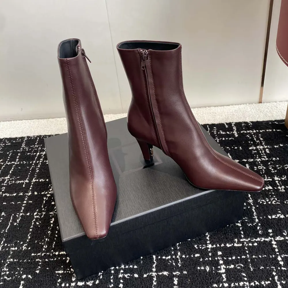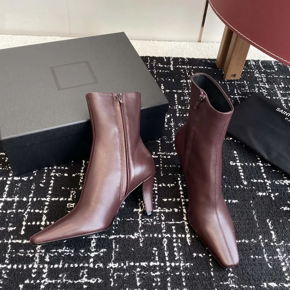 Specification: Saint Laurent YSL Women Jill Booties In Smooth Leather-Maroon