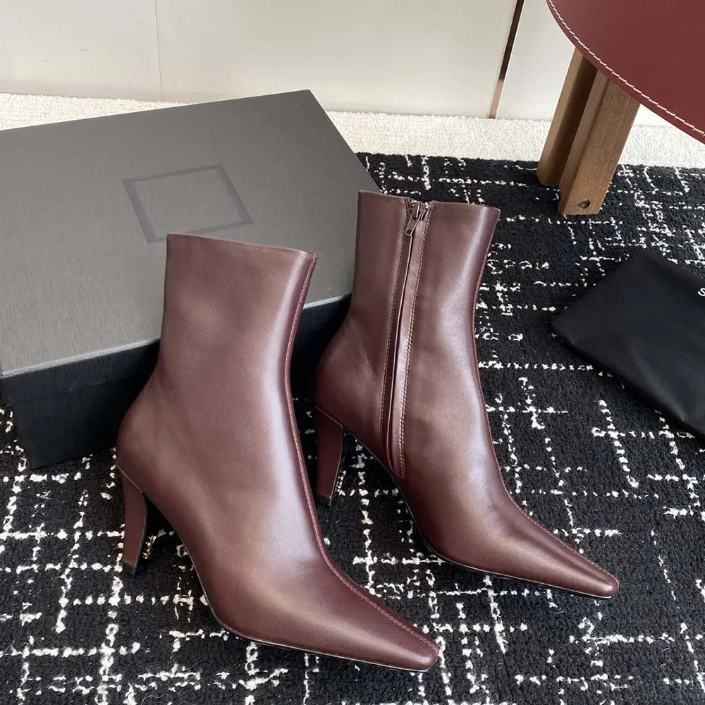 • ANKLE BOOTS WITH A SQUARE POINTED TOE AND TAPERED BLOCK HEEL