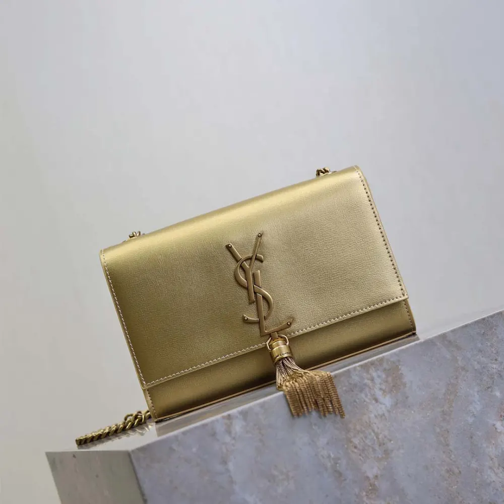 Saint Laurent YSL Women Kate Small Tassel In Metallic Leather-Gold
