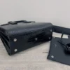 - SPACIOUS AND LEATHER-LINED, IT IS DISTINGUISHABLE BY ITS ACCORDION SIDES, SNAP TABS AND BRASS PADLOCK.
