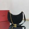 Valentino Women Mini Vlogo Signature Grainy Calfskin Hobo Bag-Black