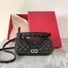 Valentino Women Rockstud Spike Calfskin Shoulder Bag-Black WB0K71JVU