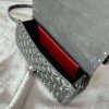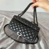 - Equipped with a leather shoulder strap and a handle/chain, both removable,