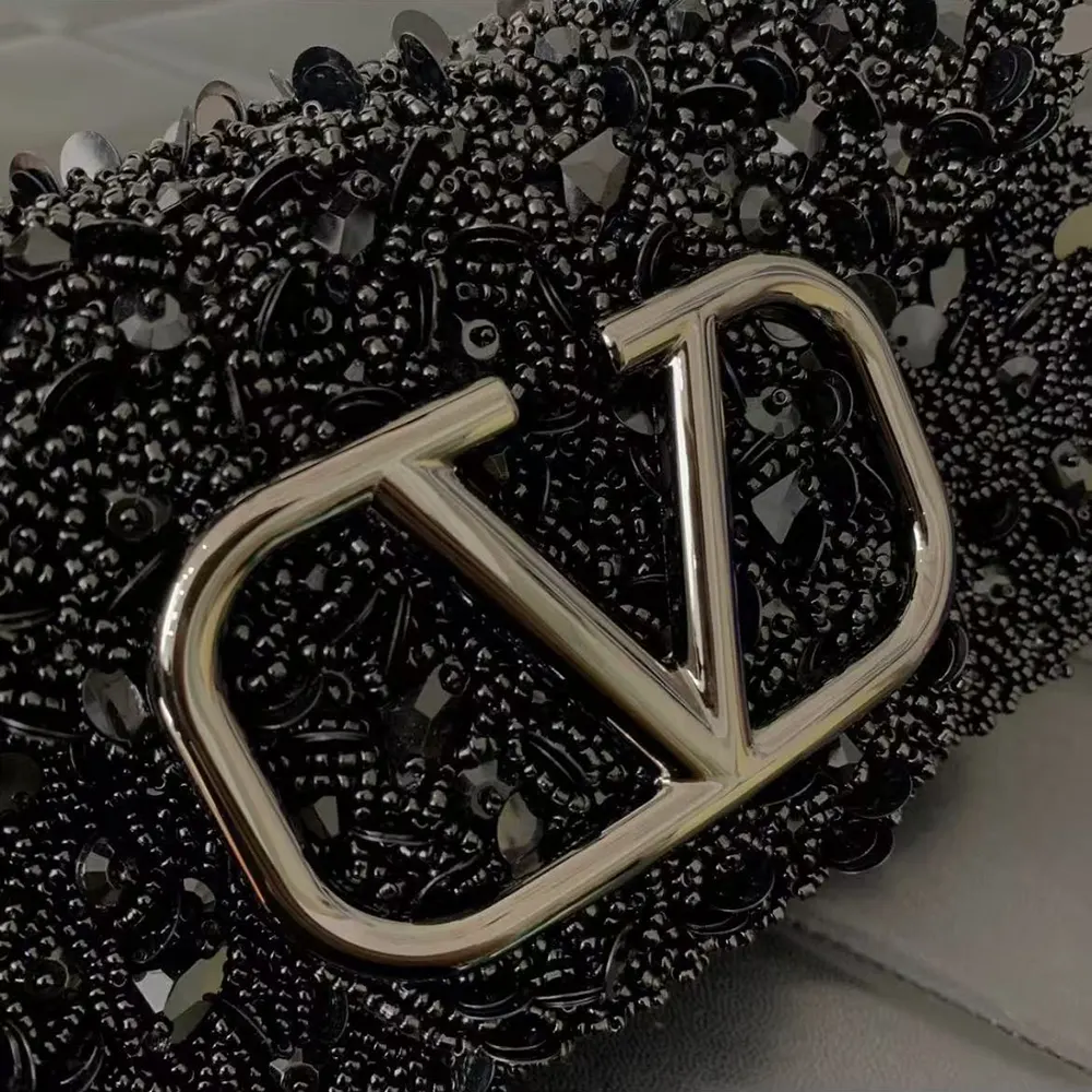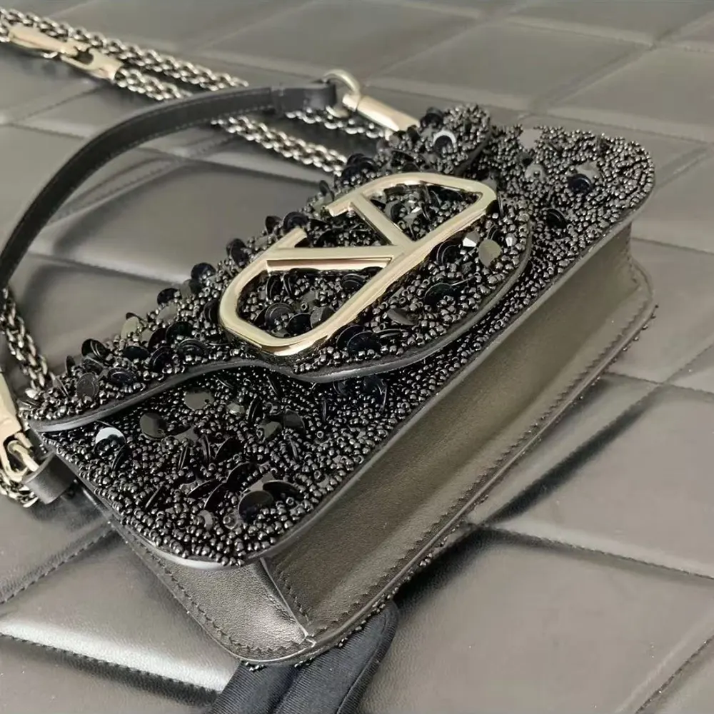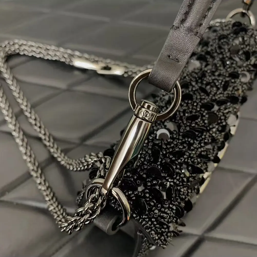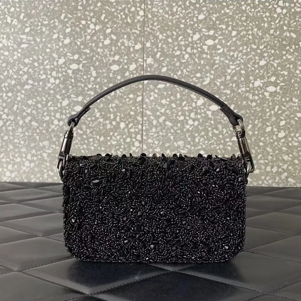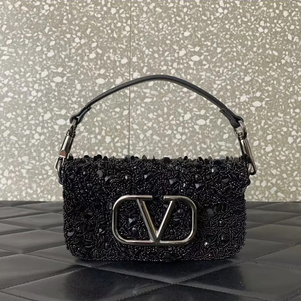 - Valentino Garavani Locò small shoulder bag in rhinestones with VLogo Signature closure.