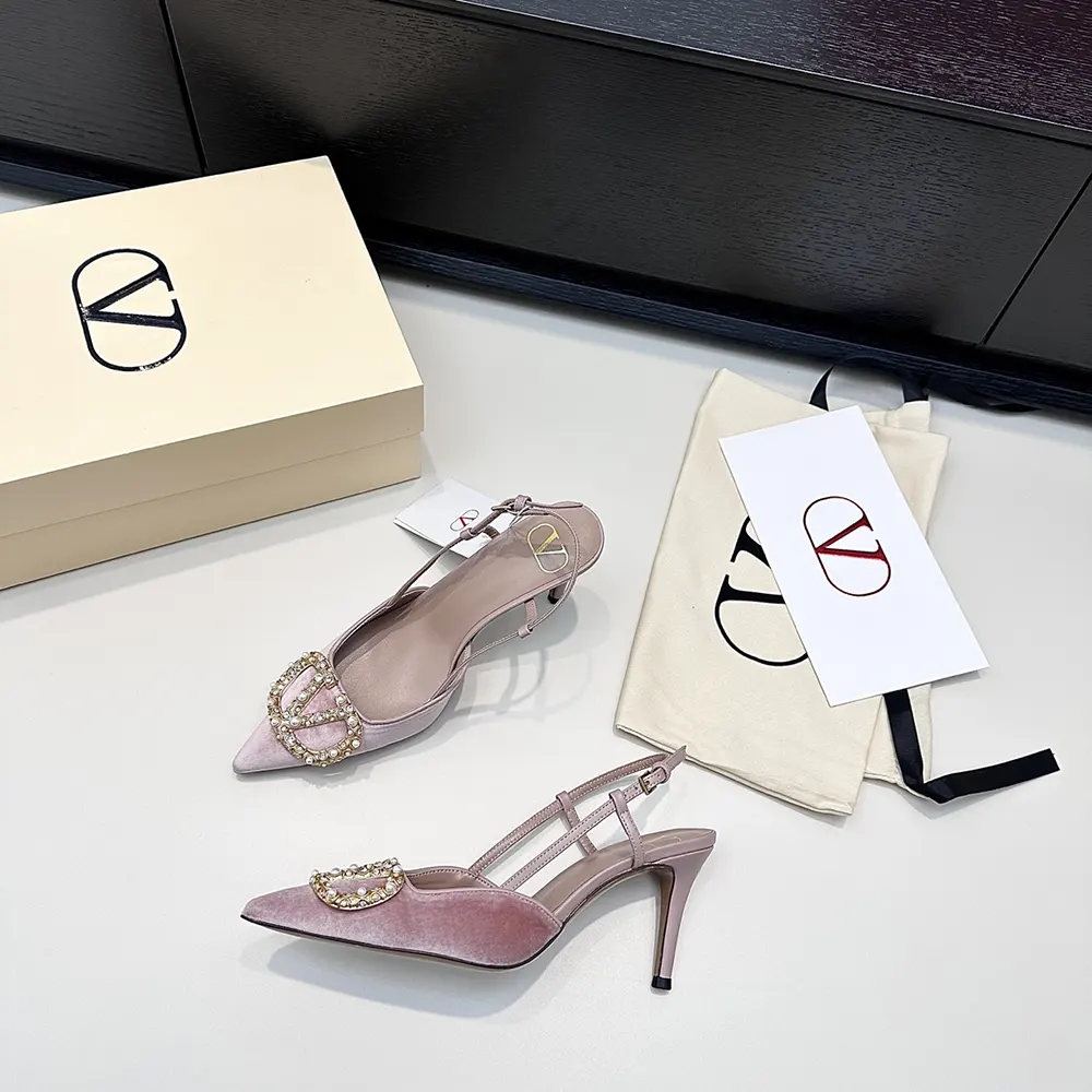 Specification: Valentino Women Vlogo Signature Slingback Pumps In Velvet With Jewel Logo