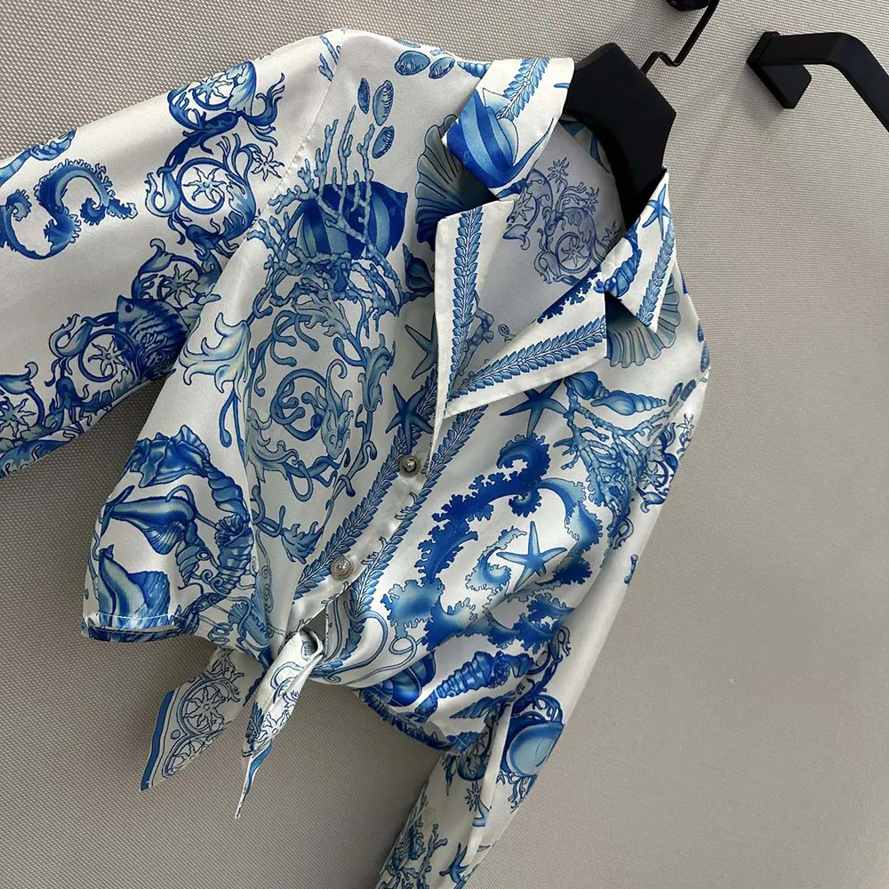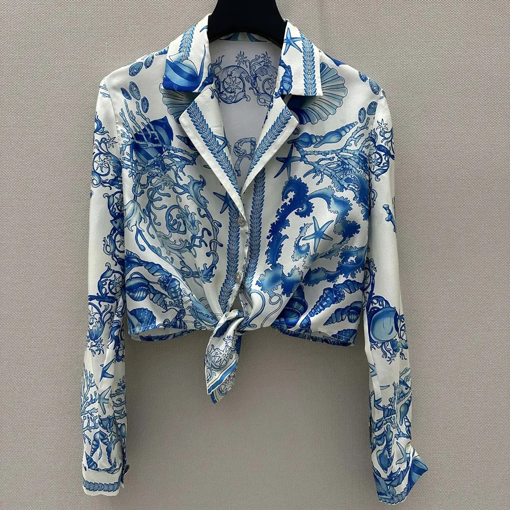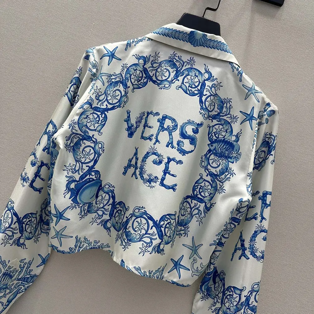 Specification: Versace Women Underwater Barocco Knotted Crop Cotton Shirt 1020307