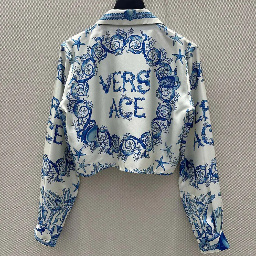 Versace Women Underwater Barocco Knotted Crop Cotton Shirt 1020307